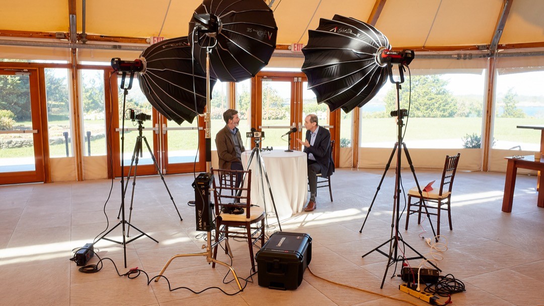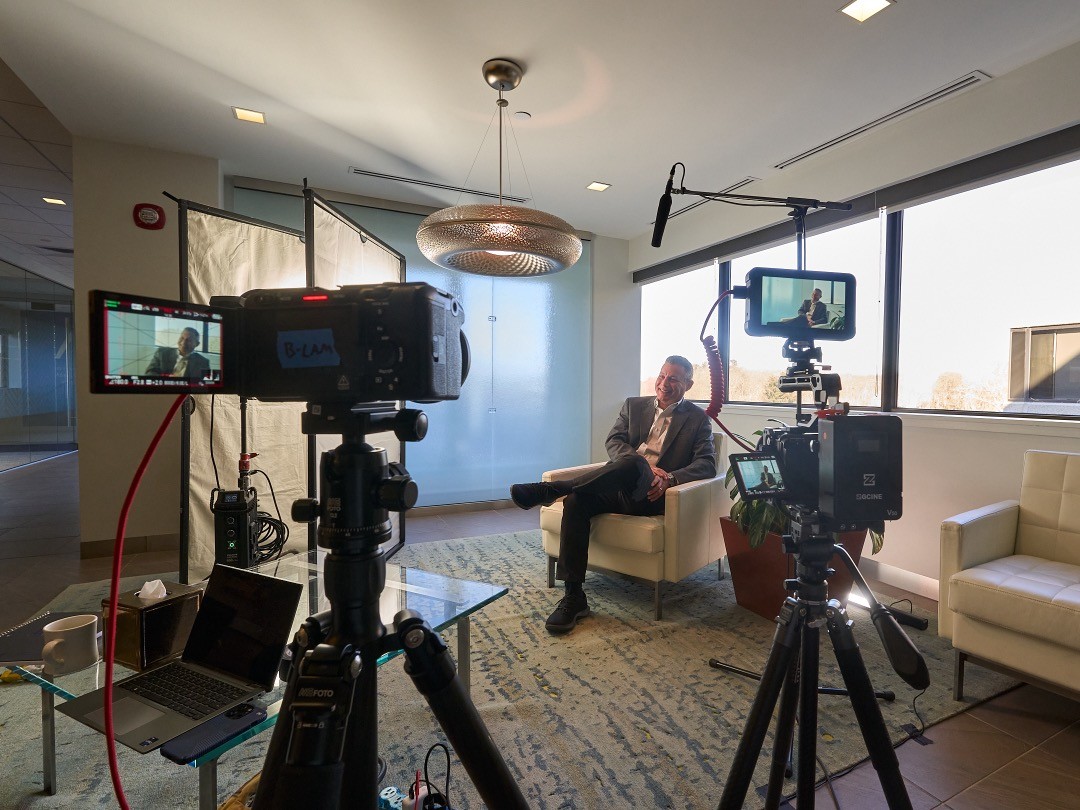 A studio-quality team member interview or a podcast with a client, shot at your offices, a conference, or anywhere else you can think of.